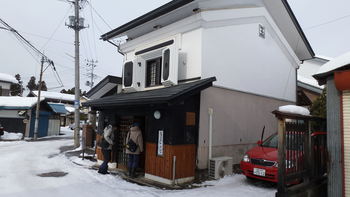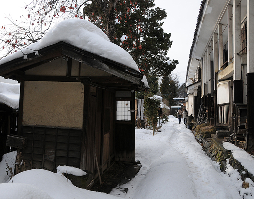 The two Norwegian artists and I seem to be the only westerners in town and as we were on TV together with our lead Japanese artist Yoshiko Maruyama early on we seem to be known wherever we go. The fact that we are holding the exhibition in the most historically important Kura has also attracted people who rarely get a chance to see inside this privately owned building. It is preserved but un-restored with no glass in doors or windows and only limited electricity, so a chilly place in sub zero temperatures. It is the largest Kura in town, being three separate Kura buildings linked together. A Kura is a traditional rice storage barn and, with the town being in the centre of a very large and fertile rice growing area, there are huge numbers. The Mayor told us there are estimated to be 20,000 Kuras in and near the city. There was a saying that every man born in Kitakata should build his own Kura, and with a current population of 40,000 the numbers still stack up.