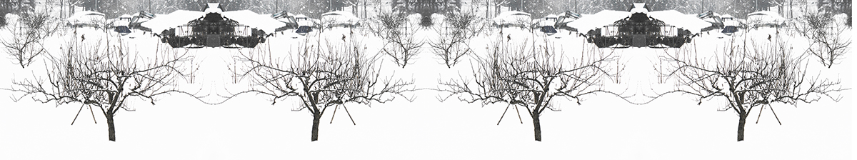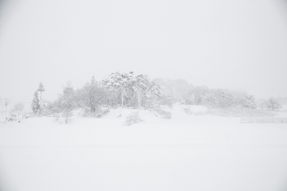 For my part having to decide early on in the residency what form my work would take, and with a requirement to connect with local issues, I decided to take an in-depth look at the snow that deeply covers this area. While snow of this depth was a great surprise to me I soon discovered that all of the local people and the refugees housed here really hated snow. They actually used that word ‘hate’ which is very strong in the Japanese culture who rarely show their feeling, especially negative ones, so easily. Could I make images that might show this element in a different light? Avoiding the obvious ‘ touristic’ beautiful shrines in snow – although I couldn’t resist putting a few of those on Facebook – I looked firstly at the power of snow to remove landscape. All the human details of habitation, agriculture and communication and the cultivated land itself are simply removed from the landscape.