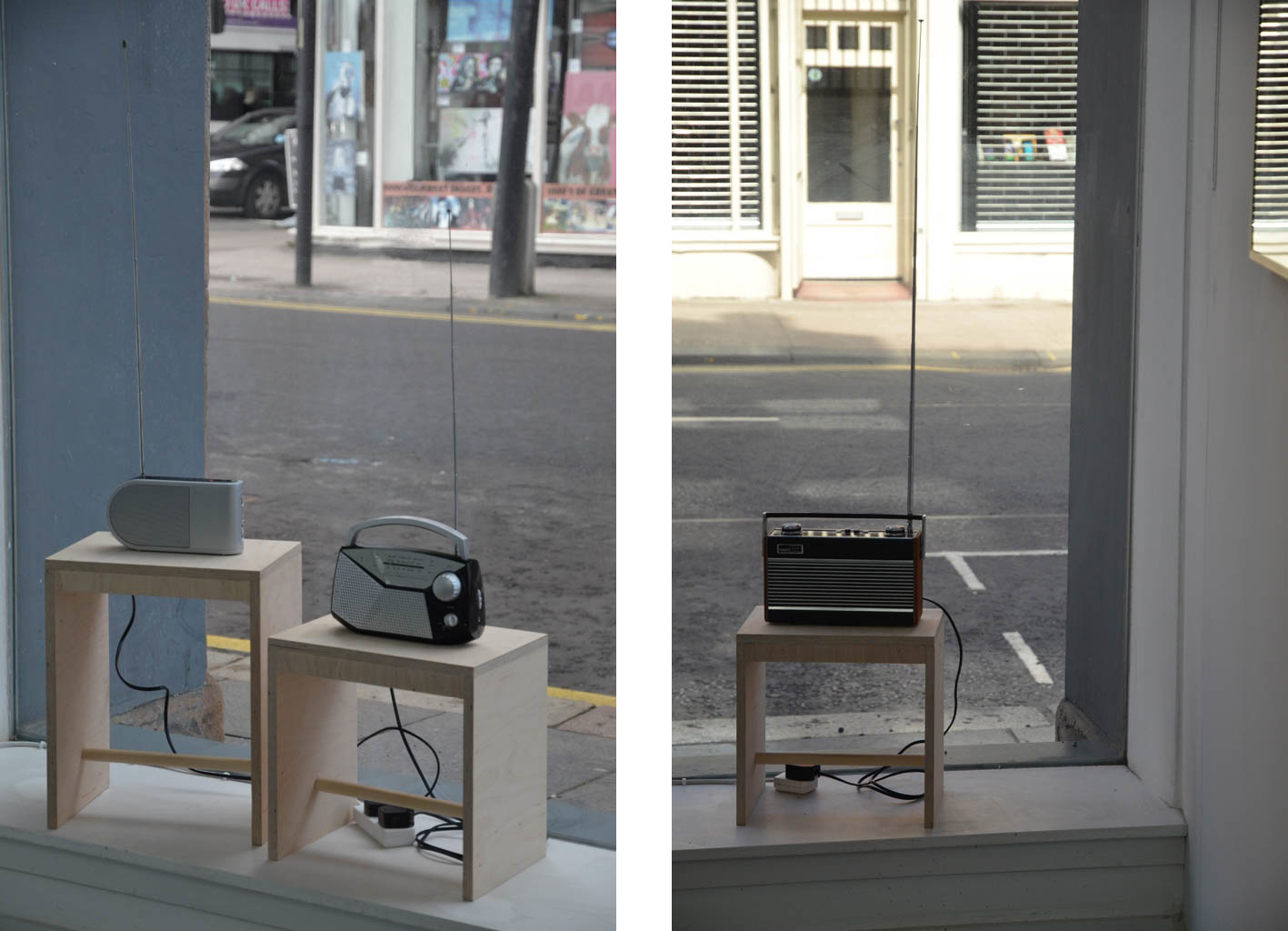 Still with the notion of radio and ‘gaps’, both these pieces of work used mini FM radio transmitters to transmit sound through radios. In Morning Broadcast, the cynic takes those ‘universe observing tools’ and plugs gaps through which it might be listened to with her own sounds……in this case, birdsong.