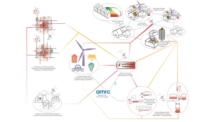 The pie charts on the right indicate the current energy situation in the UK.