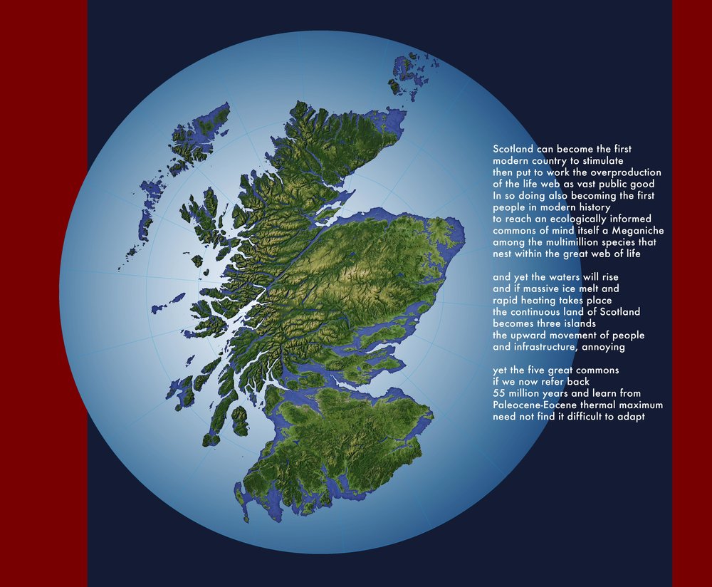 Working with The Barn in Aberdeenshire, Newton Harrison and his colleagues from The Center for the Study of the Force Majeure have been developing The Deep Wealth of this Nation, Scotland, a vision which specifically sets out to imagine Scotland as the first industrialised nation to put back more into the web of life than it takes out. The vision focuses on farming, agriculture and aquaculture (in particular lagoons), and frames these within a ‘Commons of Mind’ – the need for recognition of the prima facie need to adapt in the face of the Force Majeure.