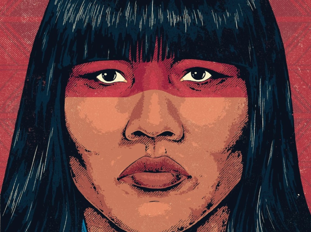 Watatakalu Yawalapiti (Brazil) illustrated by Helton Mattei (Brazil), an image from the traveling Climate Crossroads exhibition at Glasgow’s Centre for Contemporary Arts Tuesday 2 November — Thu 4 November 2021.