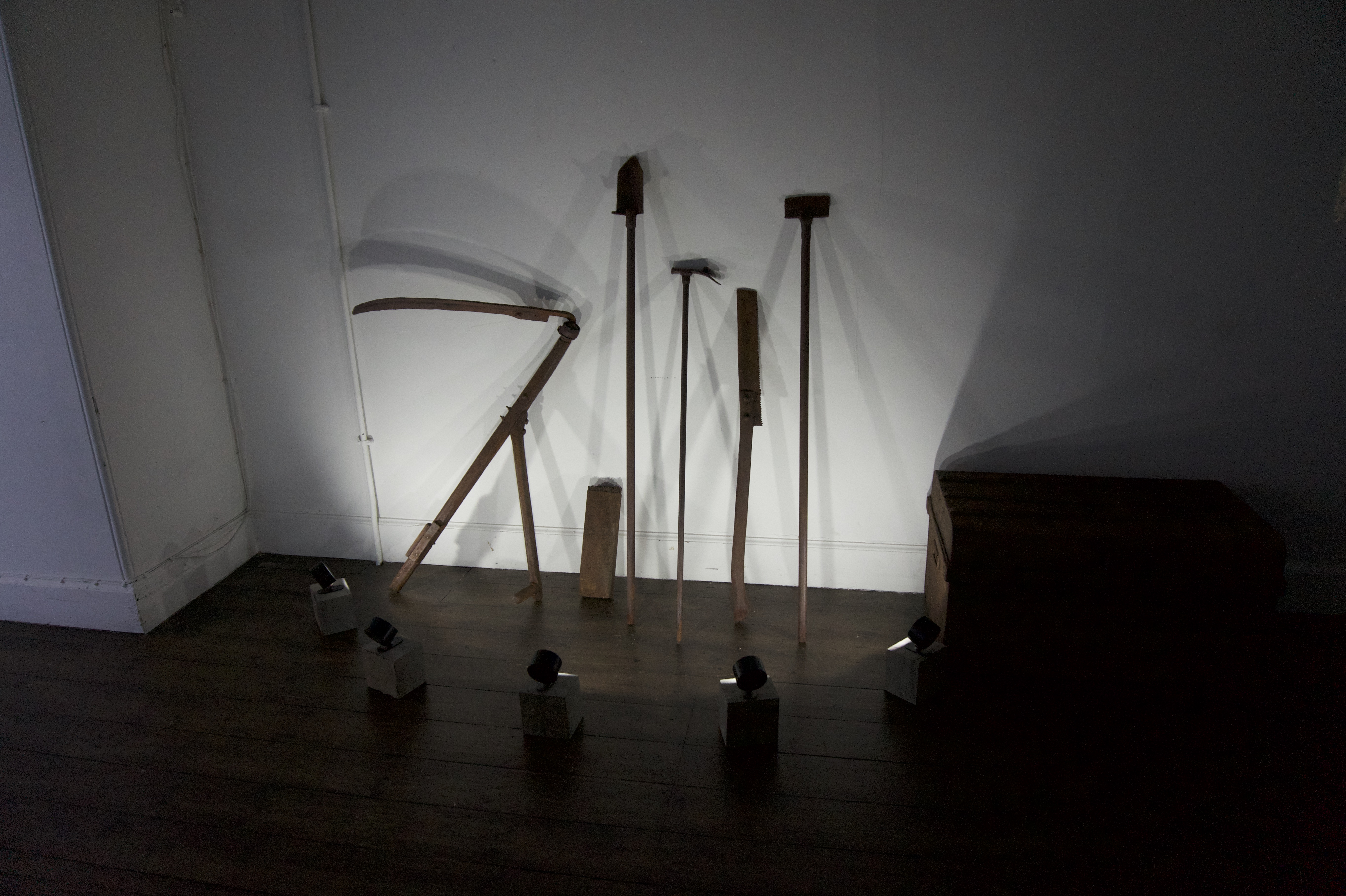 During phase 2 of the project, funded by the EDF Dorenell Wind Farm Community Benefit Fund, we continued our investigation into the community and its lives and work. We looked at how work in the area is changing, contrasting the self-sufficiency and make do and mend philosophy of the old hand tools we found with the hi-tec multi-national engineering of the wind farms.