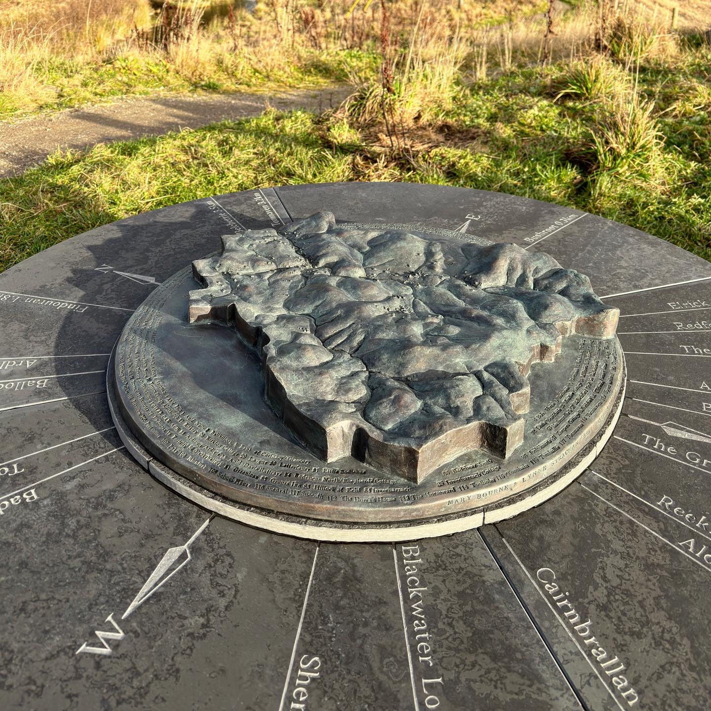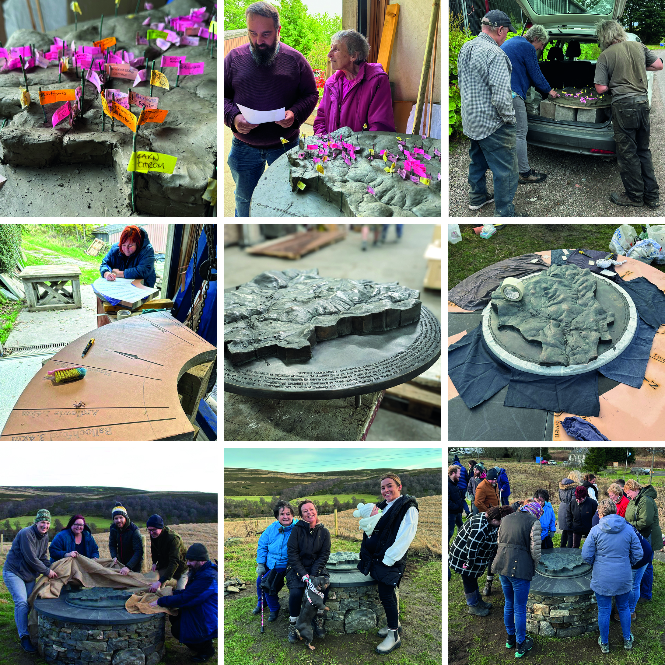 In parallel with the Trust which was collecting stories and information on their Cabrach Lives website, organising the information by house name on a map, we made a physical 3D map on which we recorded every dwelling we had identified. This was cast in bronze and mounted on a toposcope on the Trust’s Discovery Trail. It sits like a hub in the area, a central reference point to orientate yourself geographically, and perhaps also, if your family came from here, emotionally.
